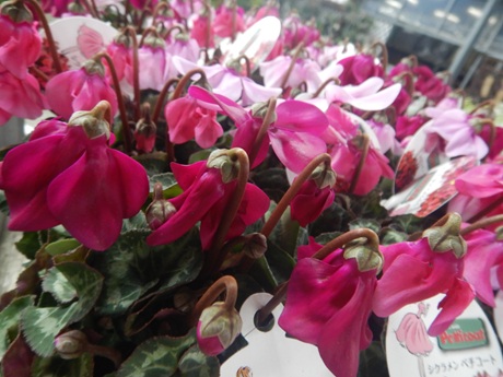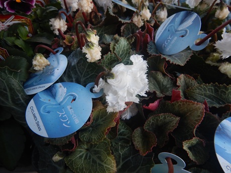 ミニシクラメンコーナー、ハボタンコーナー、華やかになってます( *´艸`)今週は定番アリッサムからミックス植えのアリッサムまでかわいいアリッサムをいっぱい入れてるので、寄せ植えにぜひどうぞ♪♪