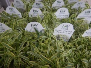 お庭で植えっぱなしにおススメなのがスーパーアリッサムシリーズ(*^-^*)夏にちょっと弱りますけど、すぐ復活して、横幅30~50センチくらいになります( *´艸`)鉢植えにするなら1株植えで、庭植にするなら横のお花としっかり離して植えることをおススメします(*^-^*)斑入りの葉にラベンダー色のお花が咲く珍しいアリッサム『ハッピーボンボン』前まで入れてた農家さんの土と相性が悪いのかなかなかいい株に出会えなかったのですが、今回はピカ一の生産者さんで作られた子ですので、ぜひ植えてみてくださいね( *´艸`)