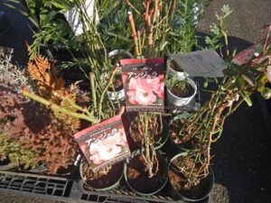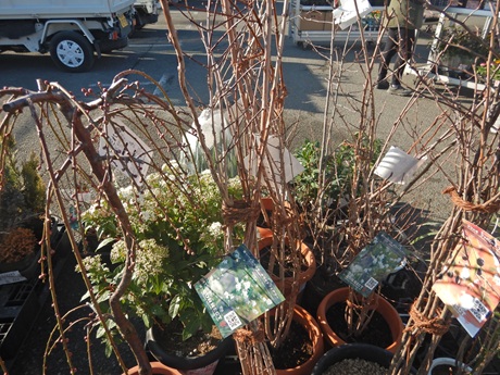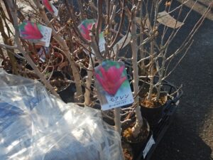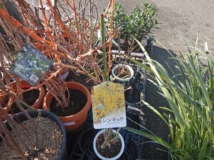 西農場(花みどりの駐車場奥にこの度併設された花木コーナーです!!遠いけど、ぜひ見てみてね(*'▽'))ちょっと遠いから、人気の花木、ちょっとレジ前に並べてます♪♪