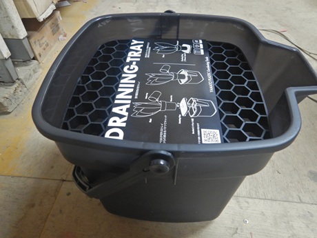 レジ横、バラの資材コーナーに置いたんですけど、バケツに、穴開いたトレイ引っ掛けられるようになってて、そのうえで植物の水がやれちゃうっていうトレー。(バケツと別売りです)お家の中で植物に水やるときに受け皿小さすぎて水あふれちゃったりすることないですか?そんな時にちょっと便利かも( *´艸`)