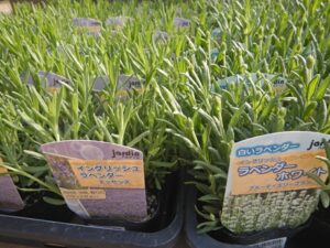 イングリッシュラベンダーの苗が入ってます(*^-^*)白花も珍しいし香りも良いのでドライにも楽しいですよね(*´▽`*)