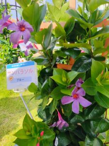 夏に長くお花が楽しめるサントリーさんの『サンパラソル』シリーズ。今年は新色が登場してます!!マンデビラの紫って今までなかったですよね(゜o゜)展示会で見たけど、結構キレイな紫でした(≧▽≦)あと、ピンクの八重咲きも初登場!!ぜひ見てみてね( *´艸`)