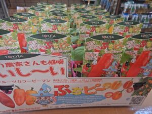 ピーマン類は激辛グループから、甘々フルーツピーマンまでいろいろ。韓国トウガラシや激辛スコーピオンあたり、結構人気なんですよ。すごいですね、みんな(;・∀・)コバはピーマンも苦手なら辛いのも苦手なので、このコーナーはちょっと遠慮(笑)