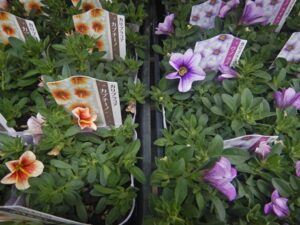 ブランド花苗コーナーでは花付きのペチュニア達のめっちゃ可愛いのがいろいろ入ってきてます(*´▽`*)株もキレイなので、植えてすぐに楽しめますよ~(*´▽`*)今年初入荷してる高澤ファームさんのにゃーぐシリーズは結構人気なので、気になる方はお早めに見に来てね(*^-^*)