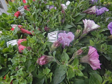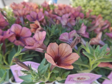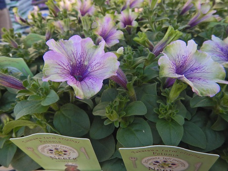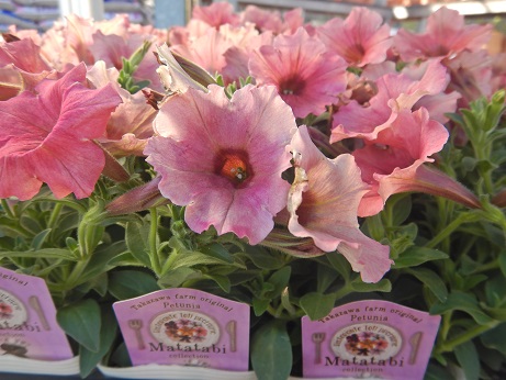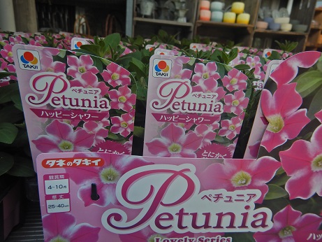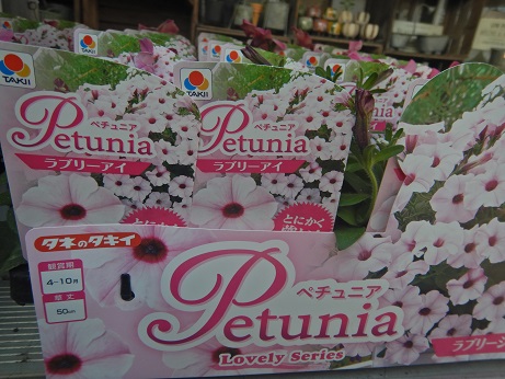 ブランド花苗コーナーでは花付きのペチュニア達のめっちゃ可愛いのがいろいろ入ってきてます(*´▽`*)株もキレイなので、植えてすぐに楽しめますよ~(*´▽`*)今年初入荷してる高澤ファームさんのにゃーぐシリーズは結構人気なので、気になる方はお早めに見に来てね(*^-^*)