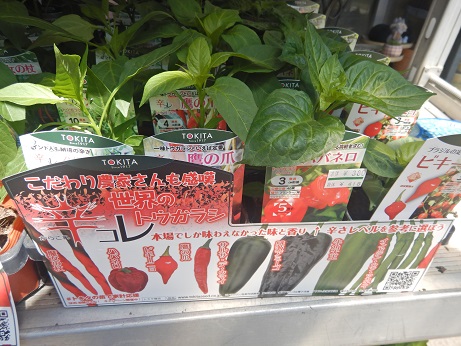 ピーマン類は激辛グループから、甘々フルーツピーマンまでいろいろ。韓国トウガラシや激辛スコーピオンあたり、結構人気なんですよ。すごいですね、みんな(;・∀・)コバはピーマンも苦手なら辛いのも苦手なので、このコーナーはちょっと遠慮(笑)