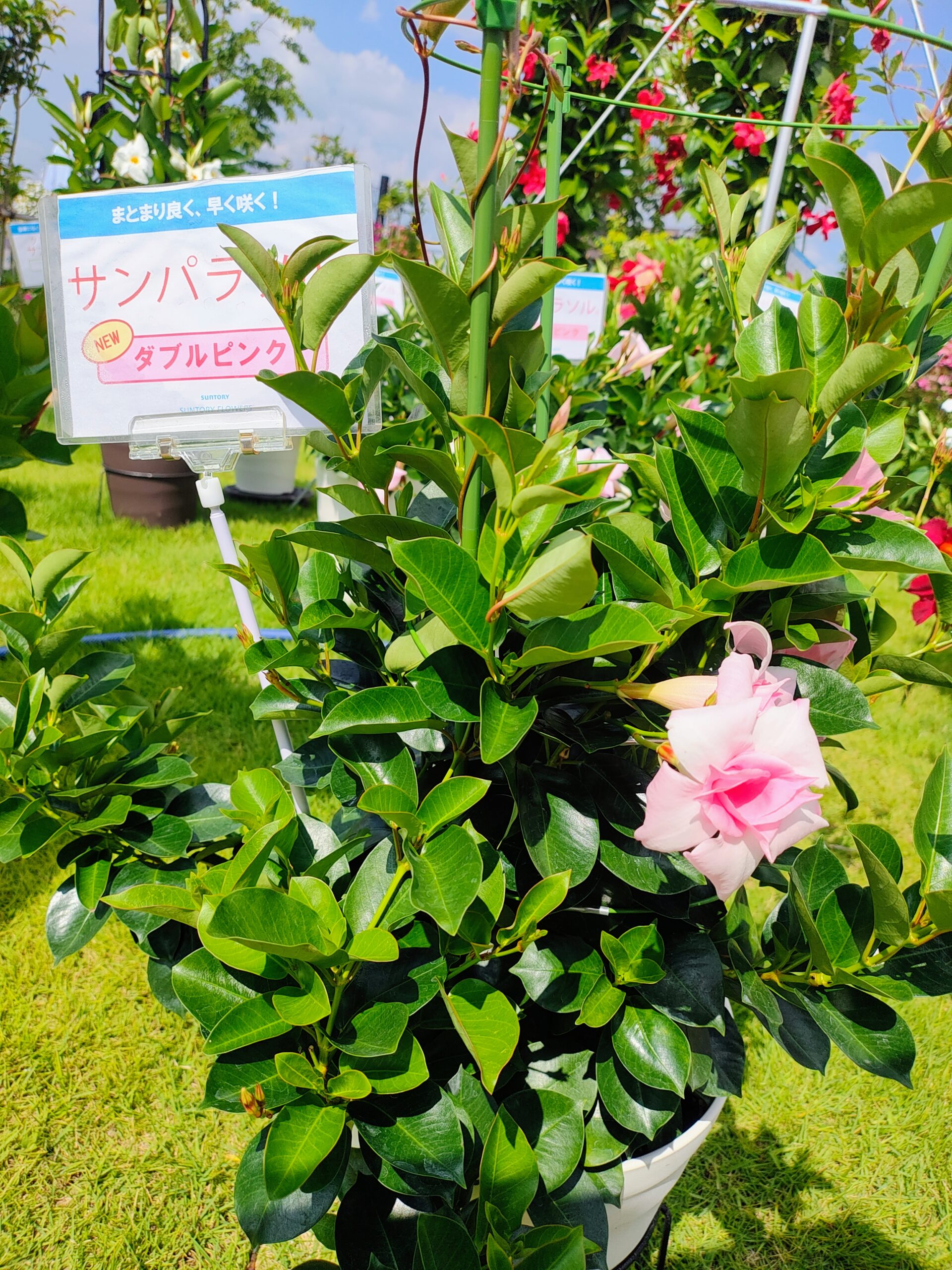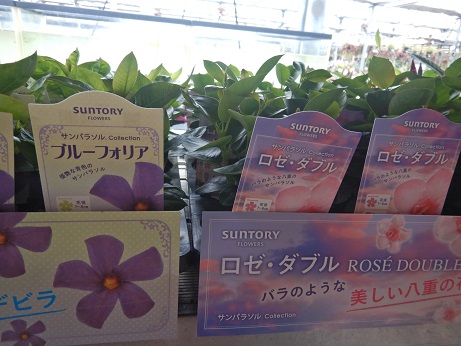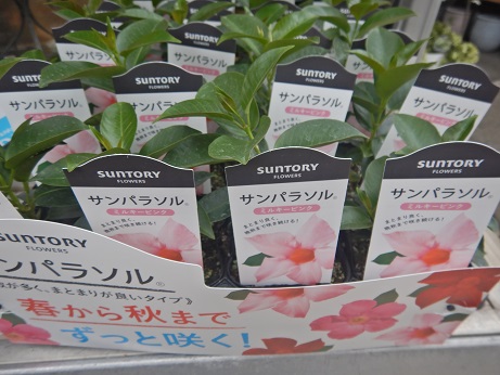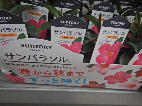 夏に長くお花が楽しめるサントリーさんの『サンパラソル』シリーズ。今年は新色が登場してます!!マンデビラの紫って今までなかったですよね(゜o゜)展示会で見たけど、結構キレイな紫でした(≧▽≦)あと、ピンクの八重咲きも初登場!!ぜひ見てみてね( *´艸`)