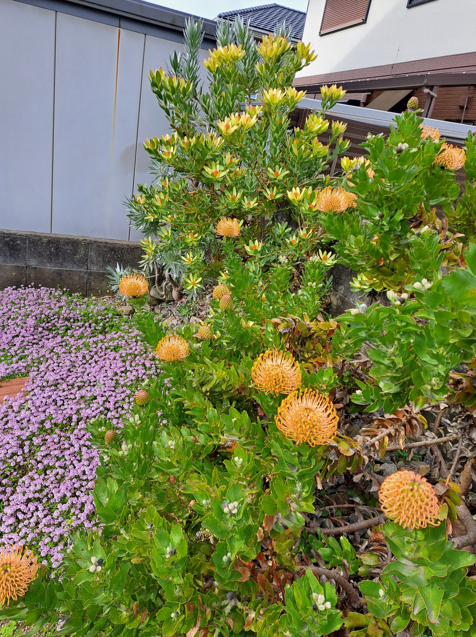 去年は咲かなかったピンクッションが今年は蕾がバンバン膨らんできてます♪♪いっぱい咲きそう(*'▽')その奥、リュウカデンドロン『サマーサン』。その奥が同じくリュウカデンドロン『シルバーアフリカーナ』です(*^-^*)みんなまぁまぁおっきくなってご機嫌なもよう。けっこう日陰なんですけど、最近夏が暑すぎるので、ちょっと日陰くらいのほうがいいのかも(*´▽`*)(夏は日が高いので少し日が入ります)
