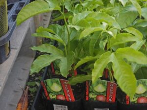 パッションフルーツ種類があって、今回入荷してる紫色の皮の品種は1種類でも実がなります。黄色の実がなるタイプは受粉樹(紫の実がなる品種)を一緒に植えないといけないので気を付けてくださいね(*^-^*)