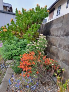 ワイルドフラワーコーナーは、ちょっとおためしコーナーで、水はけよくしていろいろ植えてみてます(*^-^*)ちょっと耐寒性の弱い『コリゼマ』やちょっと夏に弱い『ハツコイソウ』が嫌な季節を超えてるので、けっこう今後を期待してるコーナーです(*´▽`*)いい感じになってきたらまた報告しますね(*^-^*)