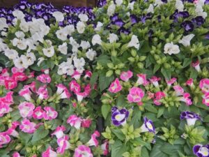 まずはお花が咲き始めて華やかなペチュニアコーナーより