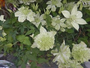 ちょっと珍しいクレマチス『シェンロン』、人気の『白万重』。キレイですよね(*´▽`*)