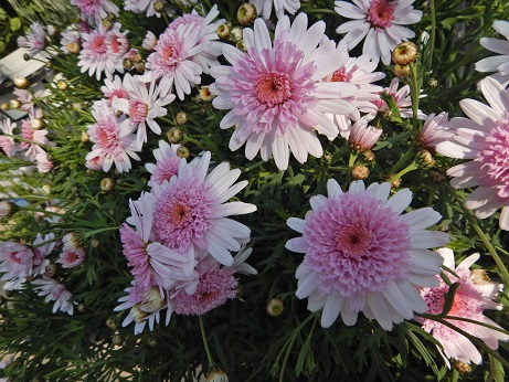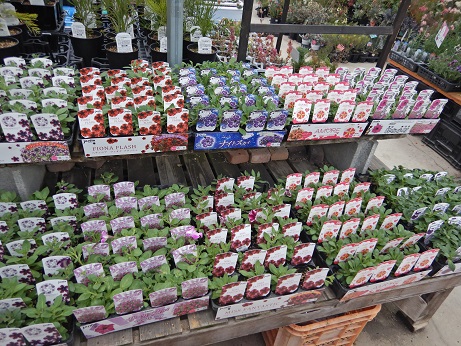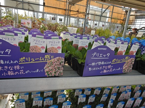 最近人気の八重咲も入荷してきてるのでとっても素敵。ちなみに写真に載ってる花が咲いてる株は去年の『ミリオンベル』の見本鉢。冬越しして、今めっちゃきれい♪♪(*'▽')