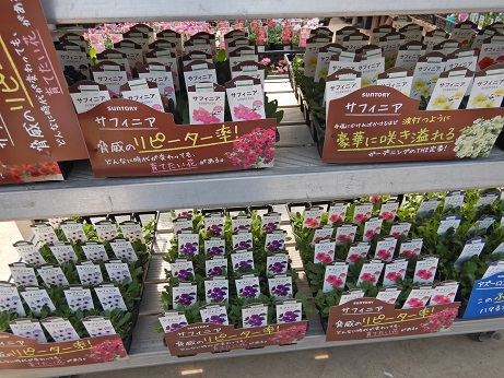 定番のサフィニアシリーズ!!色味も豊富で、一番便からほぼ全色揃えてます。今が一番選べるぞ!!( *´艸`)