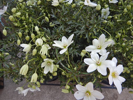 あと、クレマチス『ペトリエイ』この子もお花が咲くと大フィーバーするめっちゃ可愛いクレマチスです。まだ蕾だけど。