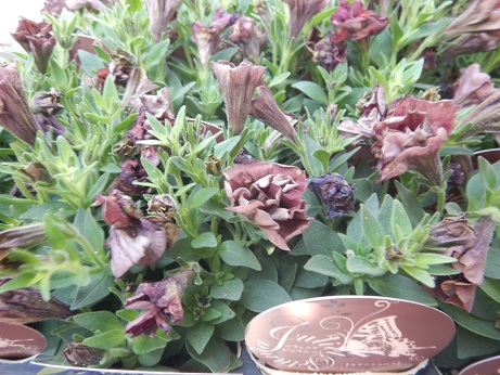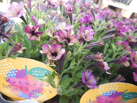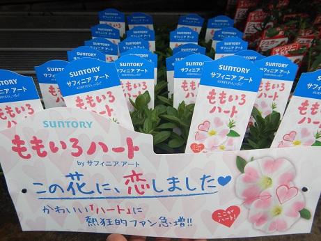 ペチュニアの変わり色の入荷は少ないけど、大人気『サフィニアアート ももいろハート』の花付き大苗が大量入荷してます(*'ω'*)ピンクのハート模様が絶大なる人気( *´艸`)個体差はあるけど、とってもかわいくてよく咲く品種です(*^-^*)