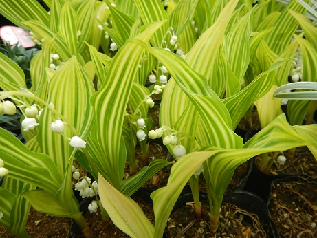 めったにお目にかかれない6種類!!斑入りのスズランは初めて見たけど、リーフがめっちゃきれいです!!リーフとしての価値が高そうだけど、お花もかわいいの( *´艸`)