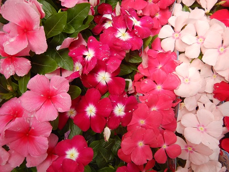 長雨は苦手ですけど、夏に強いニチニチソウ(*'ω'*)花色がかわいい『ひみこ』『さわやか』、あと、這い性で横に色がるから吊り鉢でもかわいい『メディタレイニアン』