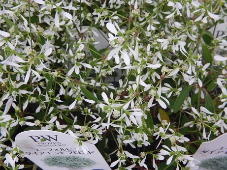 そうそう、いまさらなんですけど、ユーフォルビア『ダイヤモンドフロスト』姉妹品が出てまして、妹が『ダイヤモンドスター』八重咲きでコンパクトにまとまる品種です。さらに妹が生まれまして、それが『ダイヤモンドスノー』八重咲タイプで、ボリュームが出る品種です(*'ω'*)いろんなシーンで使い分けてね( *´艸`)
