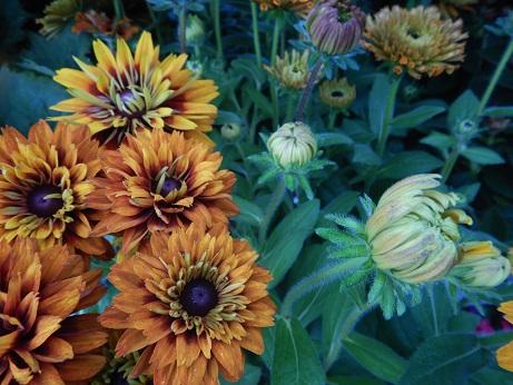夏に強いルドベキア。『チェロキーサンセット』はちょっと茶色強めの品湯、『マヤ』はころっと丸いお花がカワイイ品種です(*'ω'*)どちらも大きくなるよ~。暑くなると葉が蒸れやすいので気を付けてくださいね('ω')
