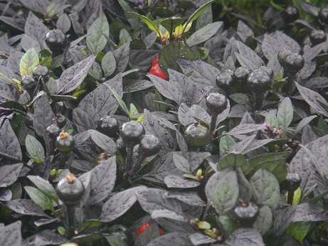 トウガラシ『オニキスレッド』はピーマンなんで、暑いの大好き!!黒い実が実ると真っ赤になります。すぐ花が咲いて白い花と黒い実と赤い実で大株になってくると超かっこいい!!