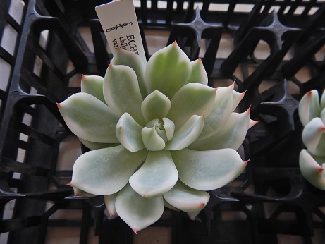 限定販売に飛びついてしまったエケベリア『チワワエンシス バリエガータ』とってもきれいで、すっごい大きな子。斑入りは葉焼けとかが怖いので、レジにてお披露目してます(*'ω'*)めっちゃ高価な子なので、冷やかし大歓迎♪♪値段見てみんなでビックリしてね(≧▽≦)