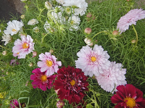 秋に向けて今から植えておくとたくさんお花が咲くコスモス『ダブルクリック』。八重咲でお花が豪華な子です(≧▽≦)とってもかわいいの♪