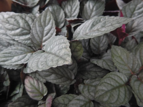 ちょっとダークなリーフもハロウィンとかでかわいいかも♪♪シルバーでちょっとテカリが入るヘミグラフィス『アルテルナータ』。あまり植物にない色味でステキ♪♪