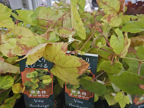 寄せ植えに流れを出してくれるツル物のリーフがいろいろ(≧▽≦)エビヅルとか、めったに出回らないので、この機会にぜひ使ってみてね(*^-^*)