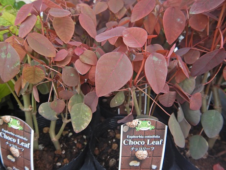 こう見えて、チョコリーフ、ユーフォルビアなんですよ(*´▽`*)リーフがかわいいので植えたくなるんですけど、冬寒いの苦手なので要注意です( *´艸`)