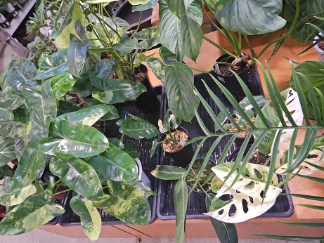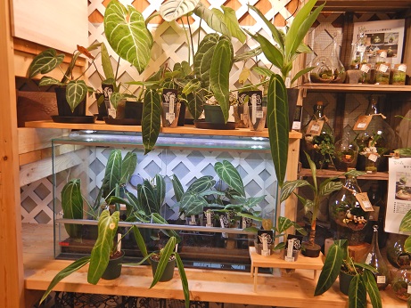 そのジュエルさんのお隣、周辺にアロイドコーナーできてきてます(*^-^*)最近ひそかに(?)ブームが来てるという、サトイモ科の植物たちです。フィロデンドロンとか、アロカシアとか。変わった子とか、斑入りの子とかちょこちょこ入ってるので、気になる方はぜひ、観葉コーナーのぞいてみてね(*‘∀‘)