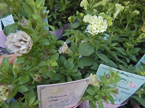 10月に入って、農家さんから直接届くきれいな苗が少しずつ入り始めます( *´艸`)まず、変わりペチュニア4種類!!『ルフナ』は初お目見えなんですけど、八重咲きのアンティーク色がステキ♪♪