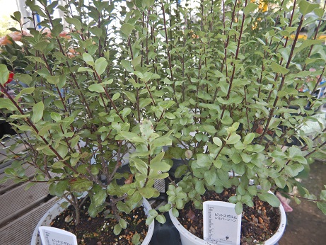 ちょっと珍しいカルーナとかピットスポラム。コプロスマの『ブロックケイ』はこれからリーフが真っ黒に、ルコテー『リトルフレーム』は真っ赤に、テイカカズラ『ジューンブライド』は可愛いピンクになってきます(*^-^*)紅葉が楽しいシーズン( *´艸`)