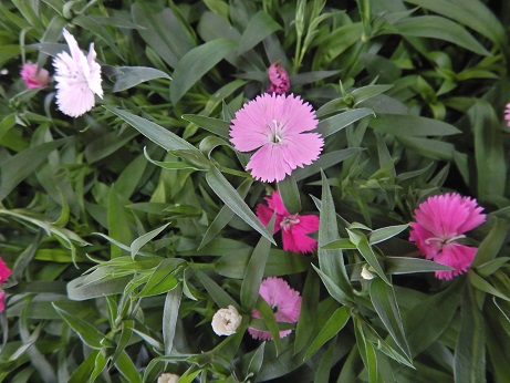 花色が白~ピンクに変化するナデシコ『カラーマジシャン』一株なのに、白とピンクと濃いピンクが咲いてるので、何か得した気分♪