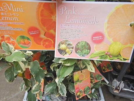 果樹コーナーに人気の『赤レモン』『ピンクレモネード』『シャルロットリュス』再入荷です(*'ω'*)