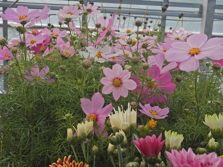 秋といえば!!コスモス!!!!(≧▽≦)写真分かりにくいかなぁ…アンティークオレンジの『オレンジキャンパス』や定番カラーの『ソナタ』ウィンターコスモスはちょっとお花小さいけど、かわいい色味(*'ω'*)