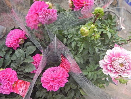ちょっと数少なくなってますけど、大株のダリアが入ってきて人気です(*'ω'*)今のシーズン、ダリアキレイですよね(*'▽')植えっぱなしで秋も春も頑張ってくれる球根植物なんで、お手軽でオススメ♪春はうどん粉病が付きやすいので、秋の方がきれいに楽しめる気がします(´▽`*)
