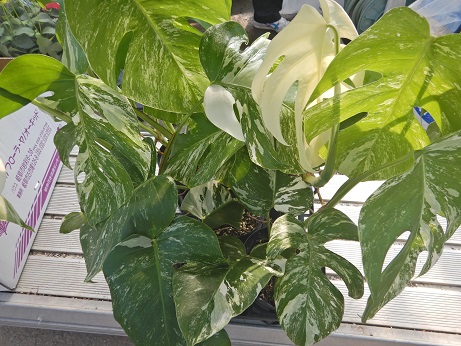 観葉コーナー内、アロイドコーナーに仲間入り!!斑入りのモンステラや、ゴールドリーフのフィロデン『フラバ』、オシャレな観葉です(´▽`*)現品限りのものが多いので、気になる方はお早めに見に来てね( *´艸`)