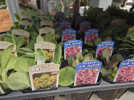 宿根草コーナーに人気のシレネ『ペンジュラ』と宿根アリッサム『サキサティレ』が入荷(*'ω'*)春になるとショッキングピンクのお花が目を惹く子です♪今から植えておくと大株になるよ~(≧▽≦)
