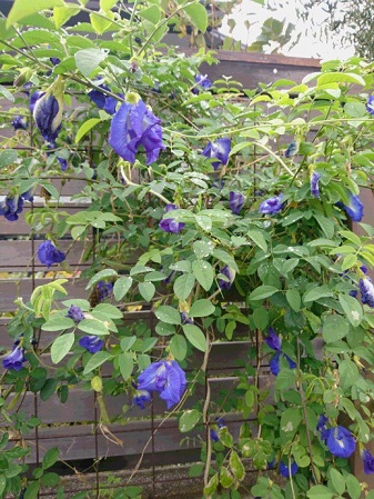 去年植えてた子の種が落ちて今花盛りの『バタフライピー』種から来てるだけあって、八重の子も一重の子もいます( *´艸`)ハーブティー作ろ~♪♪