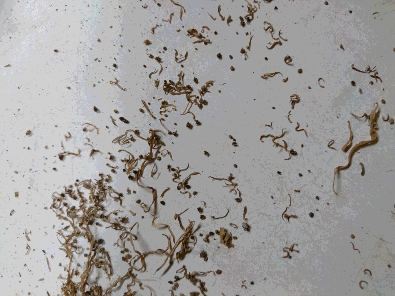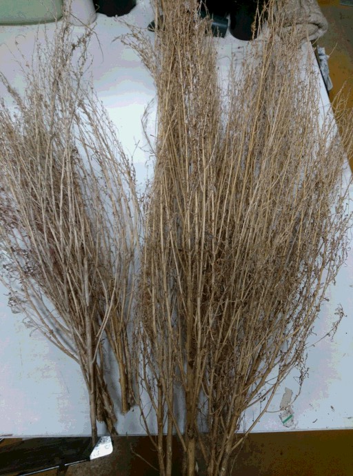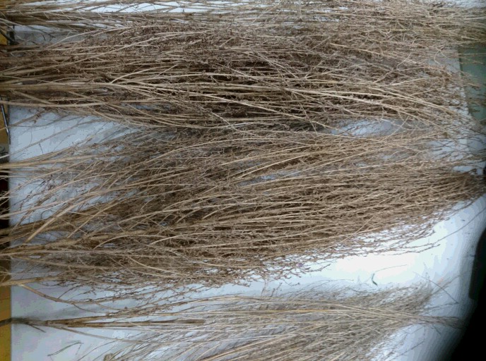 枯れたのを抜いてきて、ガシガシやって種を落とします(めんどいので、ヘアブラシで梳いてみました)。
