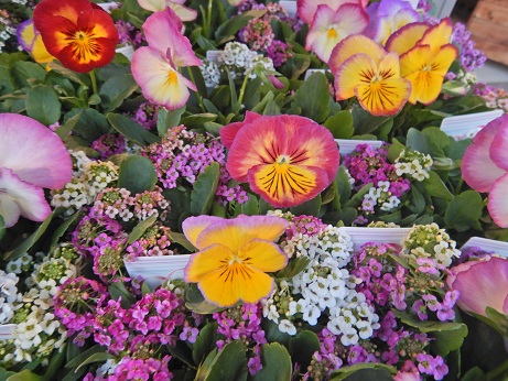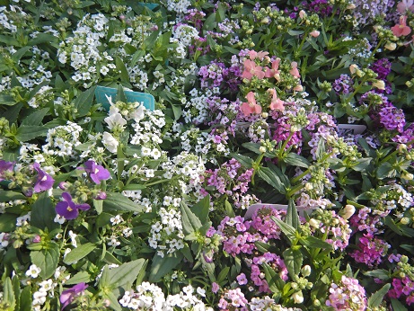 人気の『よく咲くスミレ』は株張りバツグンの農家さんから♪先週人気だった虹色スミレ&アリッサムのミックス植えも再入荷しました(≧▽≦)