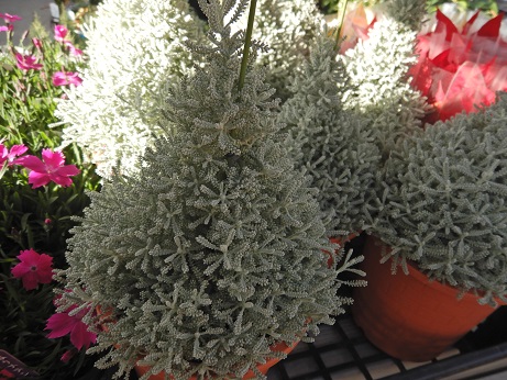クリスマスのお供に♪可愛いツリー型のサントリナ『コットンラベンダー』入りました(*^-^*)葉の形が雪の結晶みたいで可愛いの( *´艸`)