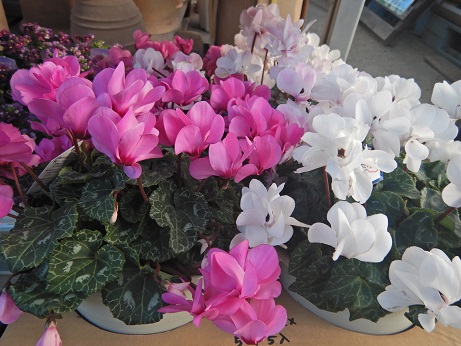 鉢植えのシクラメンコーナーも拡大中!!大株や豪華な株も入り始めました(≧▽≦)結構しっかりした株が入荷してるので、春まで楽しめること間違いなし♪♪2週間に一回の液体肥料もお忘れなく(*^▽^*)