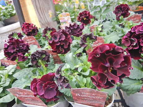 入荷1日でほぼ完売してしまいましたが、話題沸騰中のパンジー『ローヴ・ドゥ・アントワネット』『ローヴ・ドゥ・アントワネット ソワレ』『ドラキュラ』が立て続けに入荷しました。皆様、見ていただけたでしょうか?何度見てもフリルの入り方がすごいですね(≧▽≦)とっても豪華なパンジーです( *´艸`)