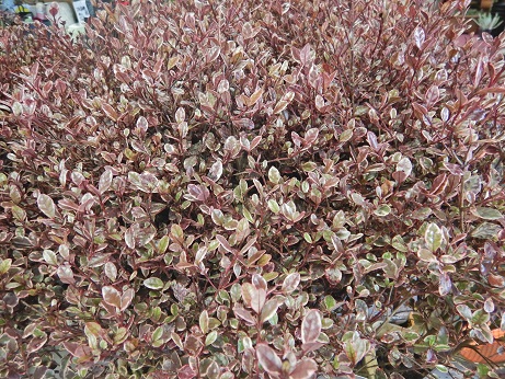 お待たせしました!!冬の花木の中で一二位を争う人気者!!ロフォミルタス『マジックドラゴン』冬の寒さに充てると、リーフがもっともっとアンティークピンクになります(≧▽≦)暑いのが苦手で、なかなか庭植して大きくしたっていう話は聞かないけど、それでもこの時期の寄せ植えにはぜひ使いたくなるステキな木です(*^-^*)