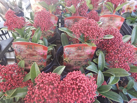 日陰にも強いスキミア『ルベスタ』赤い蕾がかなり長持ちします(*'ω'*)お花咲いても白くてかわいいよ♪