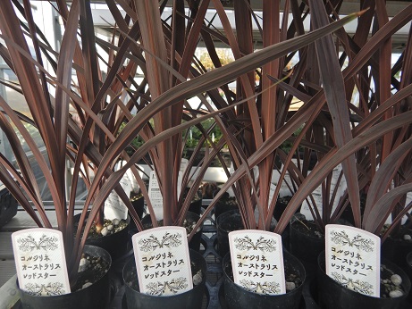 コルジリネ『レッドスター』。この木は庭植に人気です(*‘∀‘)緑の植物ばかりだと、お庭がのっぺりしちゃうので、そんな時にこの子が入るとアクセントになってほかの植物も引き立ててくれます♪