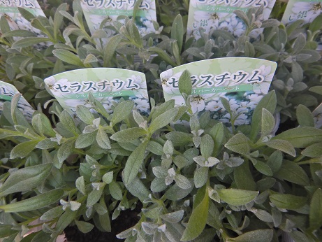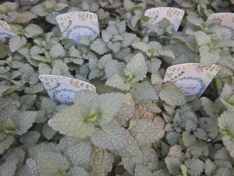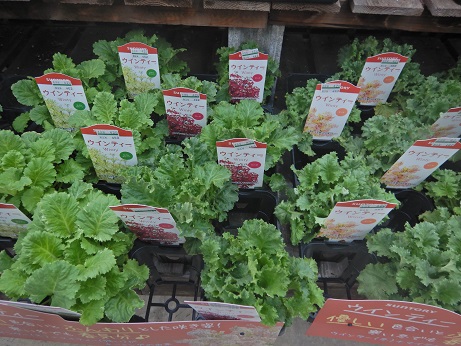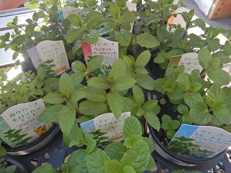 ハーブコーナーにミントいろいろ。リーフコーナーにセラスチューム、宿根草コーナーにポレモニウム『パープルレイン』入ってます(*'▽')