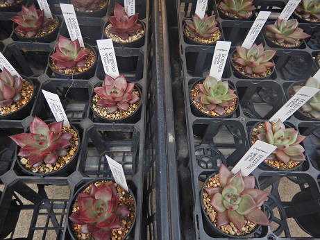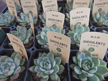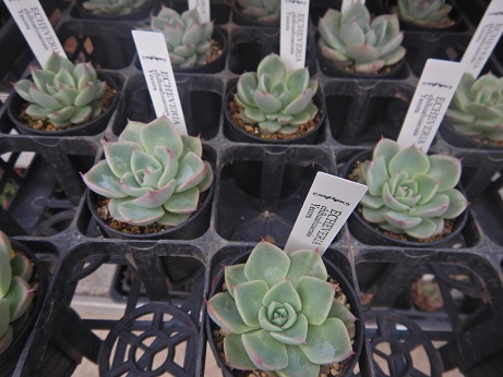 こちらはお手軽なメンバー。エケベリア『桃太郎』、セダム『オーロラ』、あといろいろ。